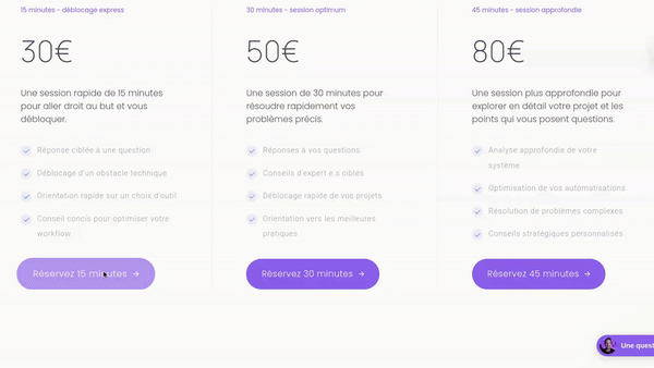 Flexibilité : Choisissez la durée qui vous convient, de 15 à 60 minutes.
